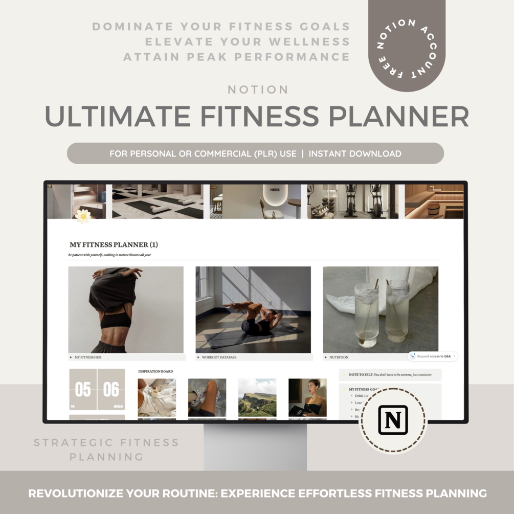 The Ultimate Fitness Planner - Aesthetic Notion Template PLR